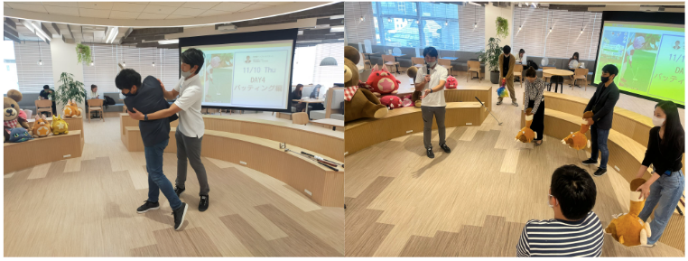 新作ゲーム『白猫GOLF』のサービス開始を社内で盛り上げたいという思いから、外部講師を招いて「Golfing(ゴルフィング)セミナー」を開催しました。従業員同士コミュニケーションをとりながら体を動かし、健康意識の向上を図っています。※Golfingは、プロゴルファーと整形外科医監修の新しいエクササイズです。