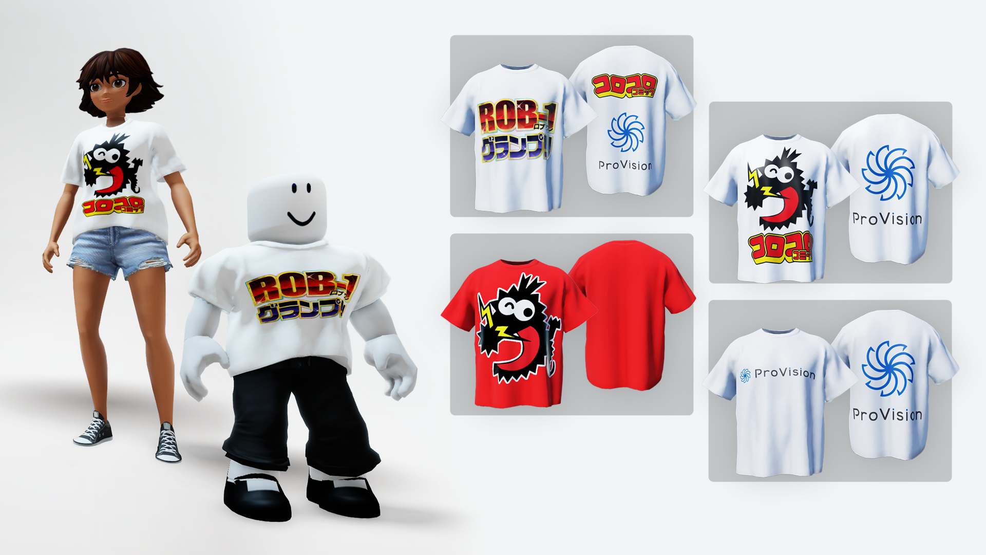 株式会社ProVision(横浜本社:神奈川県横浜市、社長:佐藤 瞳、以下:ProVision)は、2023年2月15日発売のコロコロコミック(小学館発行)にて展開された「ROB-1グランプリ」の開催を記念して、限定コラボTシャツをRobloxにて販売開始しました。ProVisionは、Robloxの日本におけるユーザー数の急成長と、個人がビジネスチャンスを創出できる多様性を持った社会実現の可能性に着目し、同プラットフォームにおける事業を展開していく予定です。