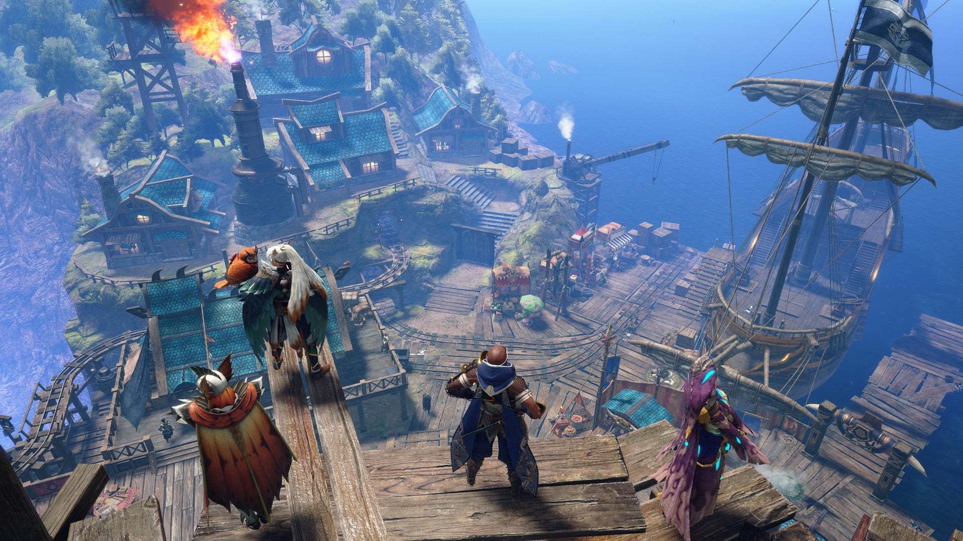 交易をおこなう港町としての側面も持ち、モンスターの調査を行うための施設はもちろん、ハンターの狩猟生活に必要な施設がすべて揃っている。カムラの里で行きつけの茶屋も出張しており、利用できるようだ。