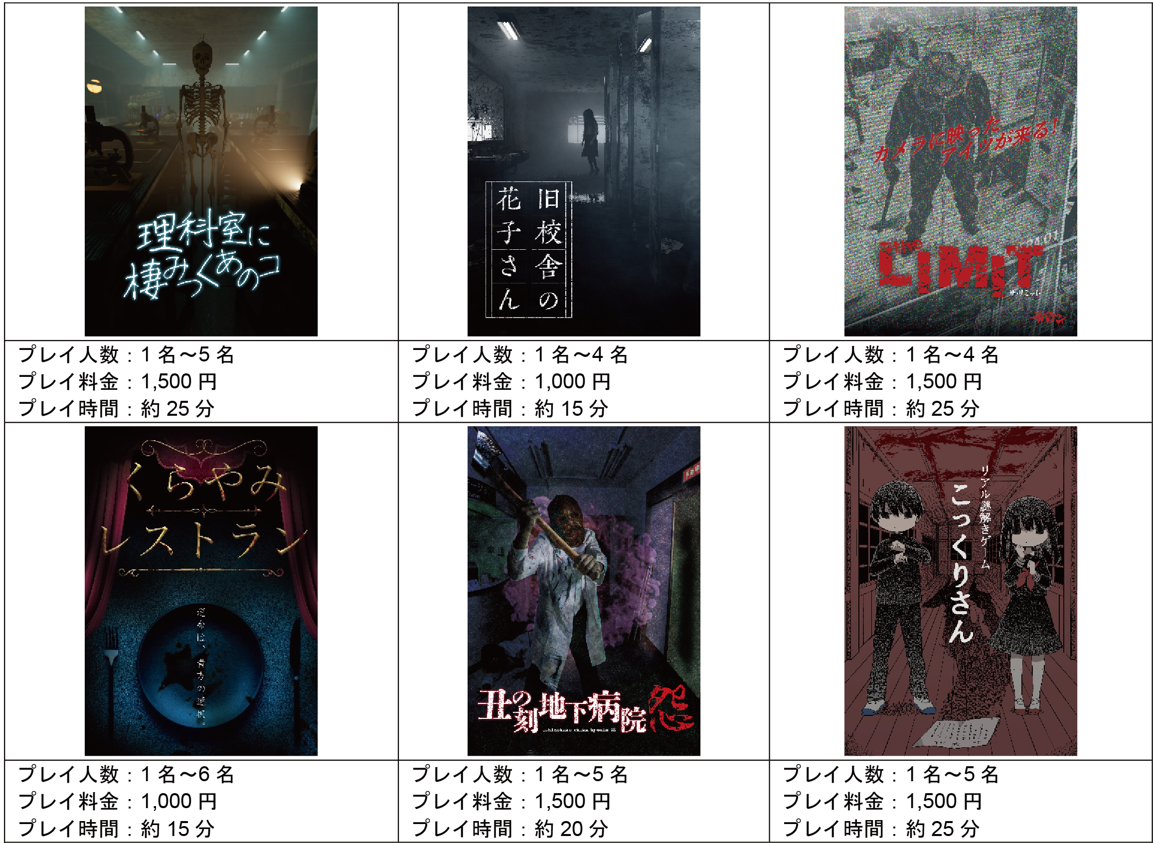「ホラー×謎解き・脱出・サウンドホラー」のカテゴリーで、完全新作2種を含む計6つのコンテンツをラインナップ。いろいろな形の絶叫体験を提供します。