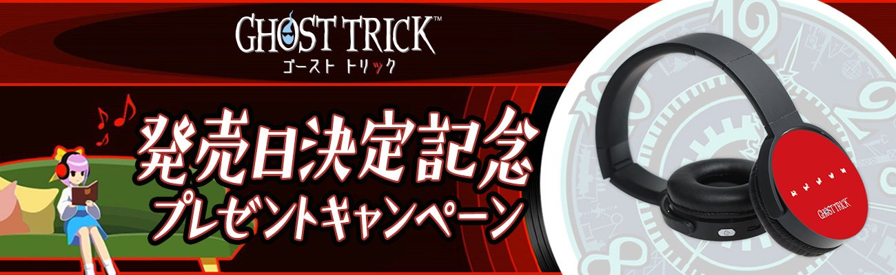 また、より予約スタートしたことも記念して、作中に登場するヘッドホンをイメージして製作した「赤いヤツ《ヘッドホン》」が抽選で30名様に当たる『ゴースト トリック』発売日決定記念キャンペーンを開催いたします。