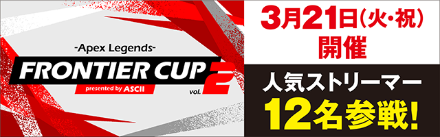 株式会社角川アスキー総合研究所(本社:東京都文京区、代表取締役社長:加瀬典子)は、2023年3月21日に開催予定のeスポーツ大会『FRONTIER CUP vol.2 -Apex Legends- presented by ASCII』の全出場者が決定したことをお知らせします。