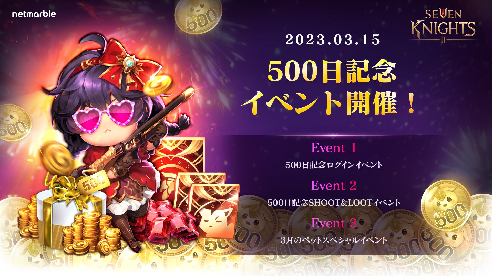 ネットマーブルは、スマートフォンやタブレット向けにサービス提供しているキャラクターコレクションシネマティックRPG『セブンナイツ2』(開発:Netmarble Nexus)において、本日3月15日(水)より、正式サービス500日を記念して特別な報酬やアイテムを獲得できるゲーム内イベントを開催いたします。