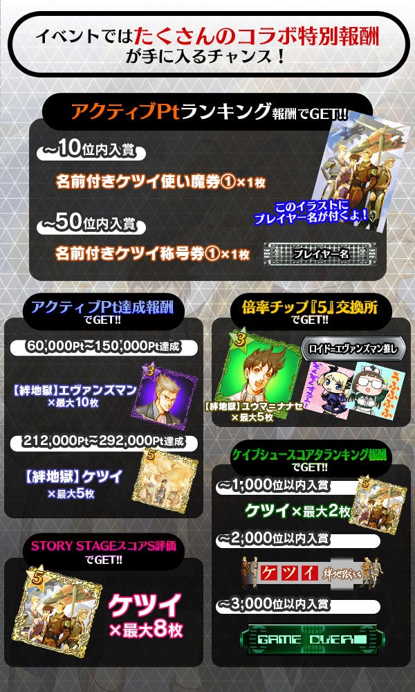 アクティブPtや「倍率チップ『5』」を集めると『ケツイ~絆地獄たち~』のコラボ使い魔やコラボ特別称号など、様々な報酬を獲得することができます。