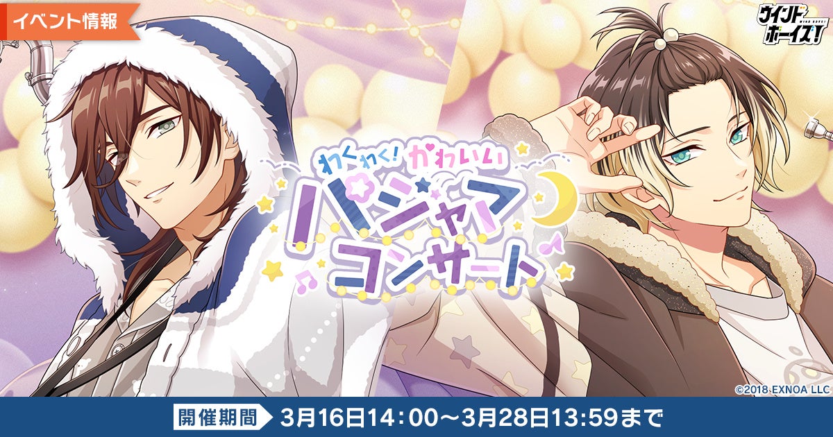 合同会社EXNOA(本社:東京都港区、CEO:村中 悠介、URL:https://games.dmm.com/)が運営するDMM GAMESは、生徒と奏でる青春育成ゲーム『ウインドボーイズ!』において、2023年3月16日(木)より、イベント「わくわく!かわいいパジャマコンサート」と各種キャンペーンを開始しましたことをお知らせいたします。