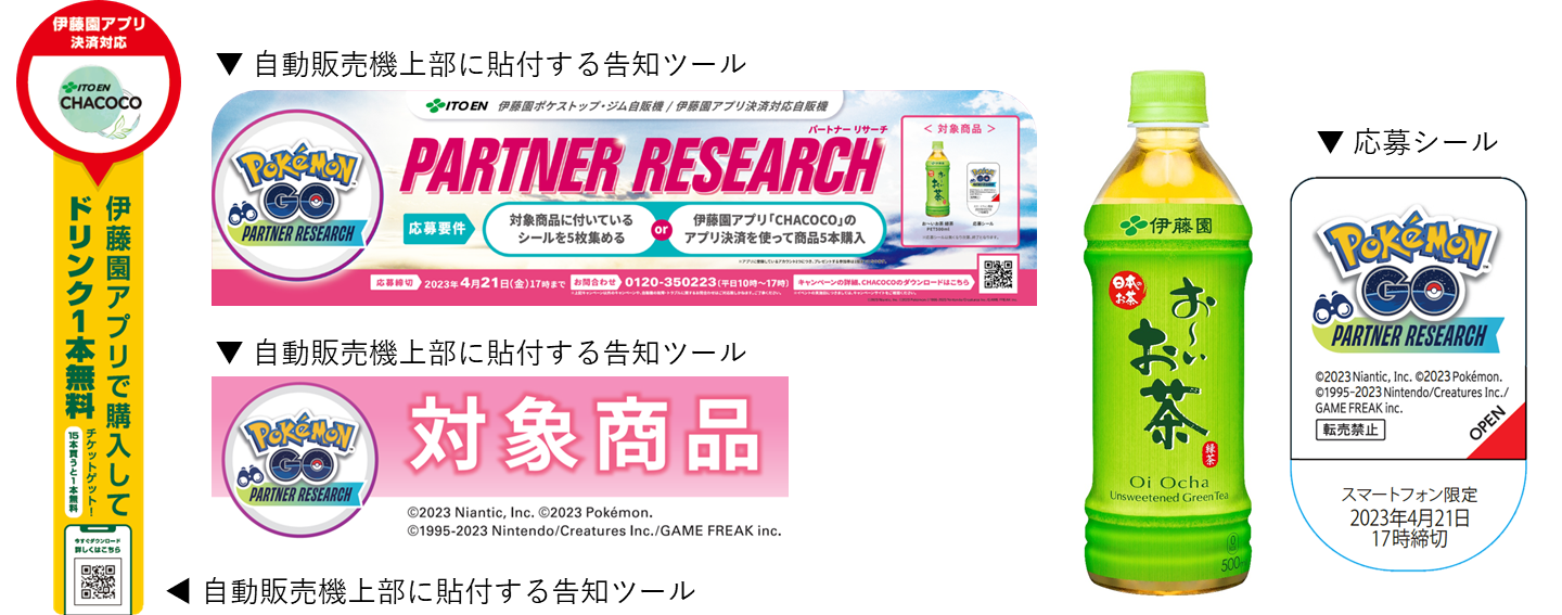 株式会社伊藤園(代表取締役社長:本庄大介 本社:東京都渋谷区)は、伊藤園自販機アプリ「CHACOCO(チャココ)」のサービス開始を記念して、iOS/Android用位置情報ゲームアプリ『Pokémon GO(ポケモン ゴー)』のイベント「『Pokémon GO』パートナーリサーチ」に参加できる「『Pokémon GO』パートナーリサーチ」参加券プレゼントキャンペーン(以下、本キャンペーン)を、3月24日(金)より実施します。