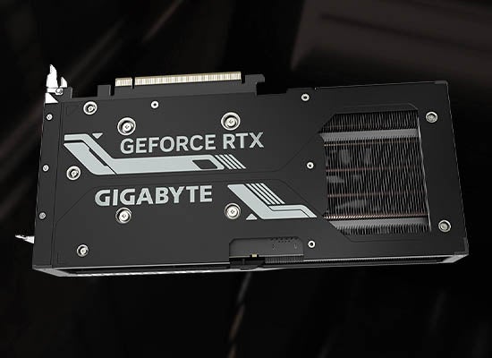 WINDFORCE 空冷システムは、3基のオリジナルブレードファン、オルタネイトスピニング、複合銅ヒートパイプ、大型銅板ダイレクトタッチGPU、3Dアクティブファン、スクリーンクーリングを搭載しており、高効率の放熱を実現しています。