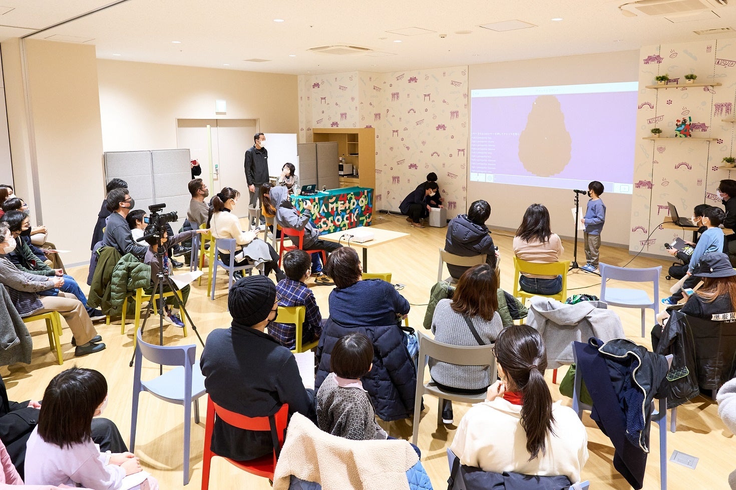 集合時間より早く来場して発表資料をブラッシュアップする参加者や、直前まで発表は嫌だと言いながら前に出たら堂々と発表する参加者、友だちの発表を聞いて感心し、次の自分の作品に取り込もうという声をあげる参加者もいて、会場は和やかな中にも緊張感のある空気が流れていました。自身の子どもの発表の時は、スマホ片手に熱心に撮影する保護者の方々も多く、発表後に広がる大きな拍手で、緊張していた子どもたちにも笑顔が溢れました。
