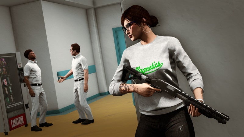 フリードマインド製薬の本社に侵入し、情報を集め、行方不明になったメンバーを救出し、フリークショップまで送り届けましょう。その際は、警報を鳴らされないようにこっそり出入りするのが賢明でしょう。敵のショットガン一発で全てが台無しになってしまうので、道中は常に周囲に警戒しましょう。