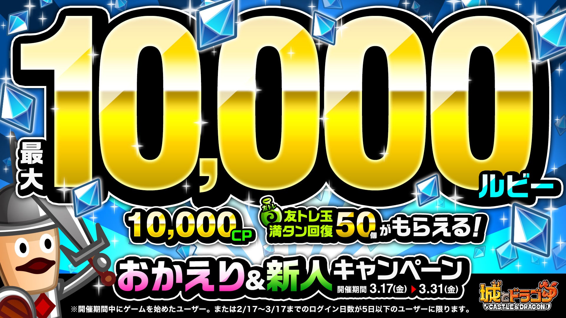 3月17日(金)より、対象ユーザーに最大10,000ルビーや10,000CP