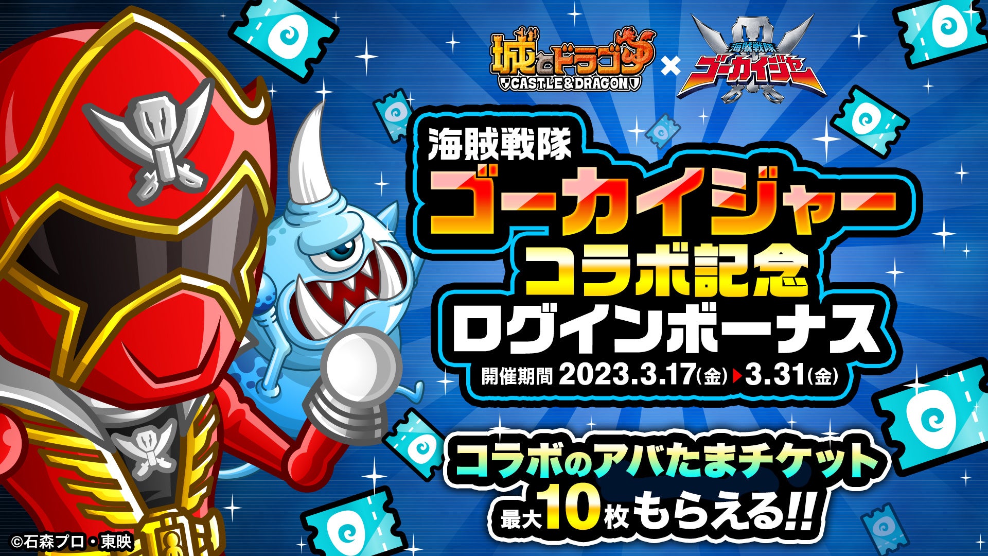 株式会社アソビズム(本社:東京都千代田区、代表取締役:大手智之)は、App Store・Google Playにて好評配信中の『城とドラゴン』で、『海賊戦隊ゴーカイジャー』(以下、『ゴーカイジャー』)との復刻コラボイベントを、2023年3月17日(金)より開催いたします。