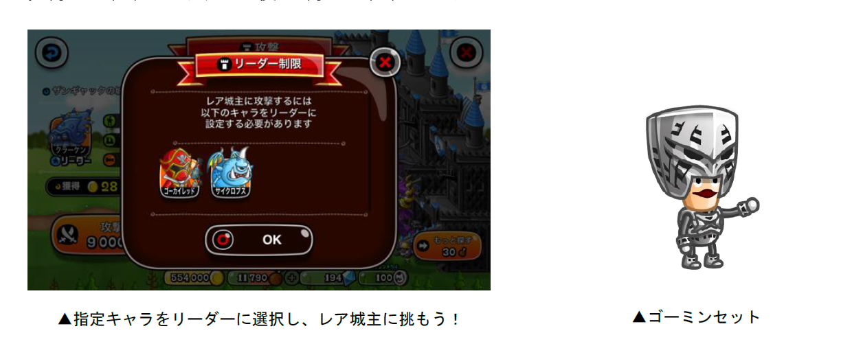 また、レア城主イベントを規定数勝利すると剣士専用の限定お着替え“ゴーミンセット”がプレゼントされます。