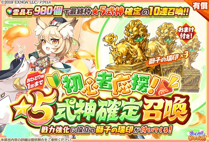 ■■■初心者応援!★5式神確定召喚 開催!■■■