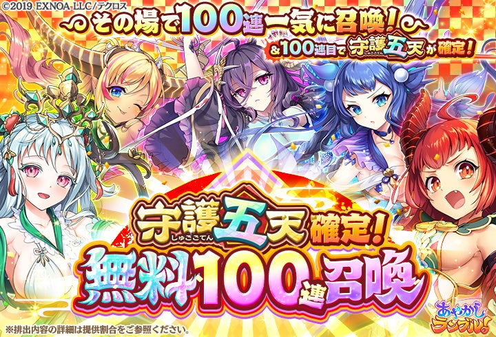 ■■■守護五天確定!無料100連召喚 開催中!■■■