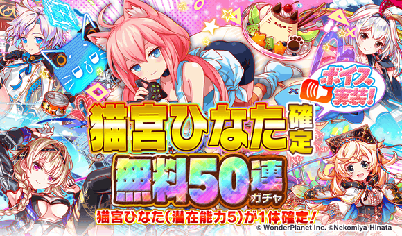 1体確定入手できる『猫宮ひなた確定無料50連ガチャ』も開催!