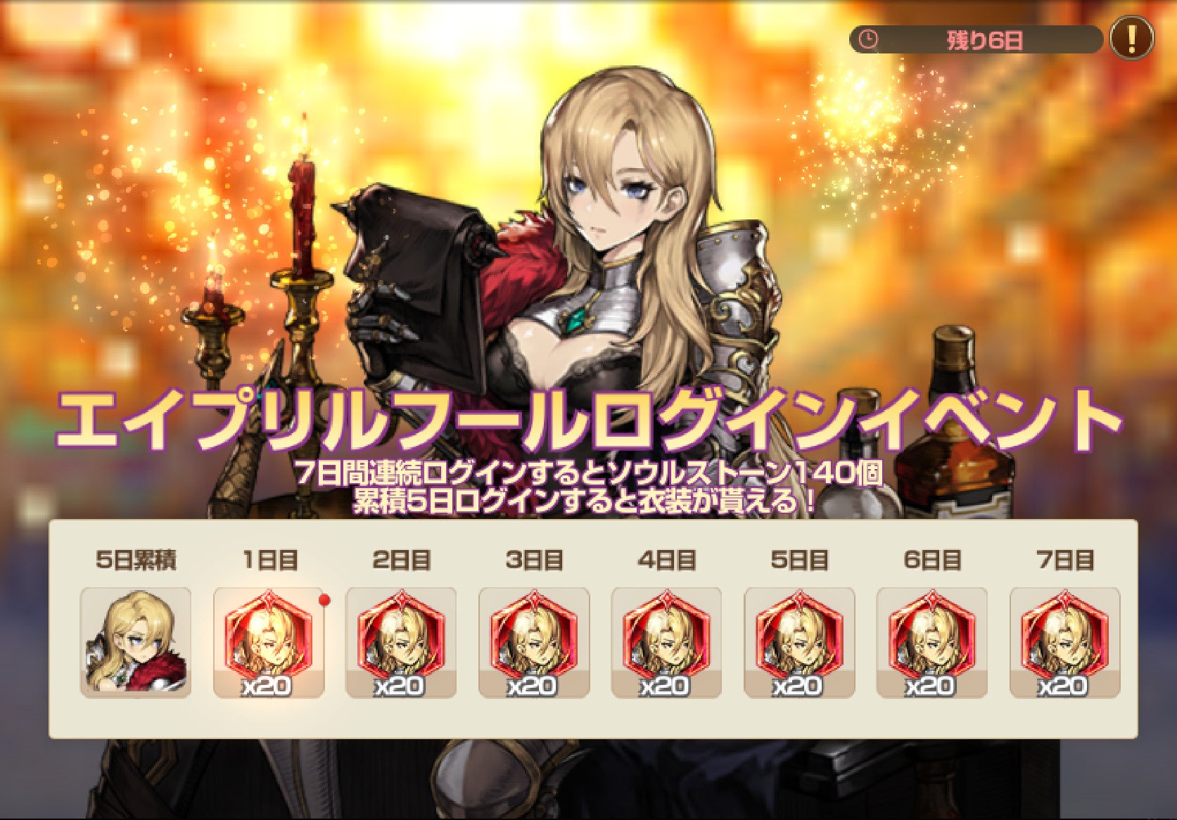 – エイプリルフールログインイベントにて、ソウルストーンとエイプリルフール衣装が貰える