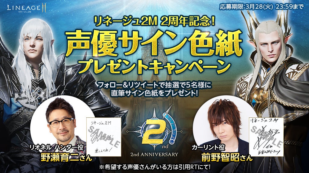 ≪「リネージュ2M 2周年記念!声優サイン色紙プレゼントキャンペーン」の詳細はこちら≫