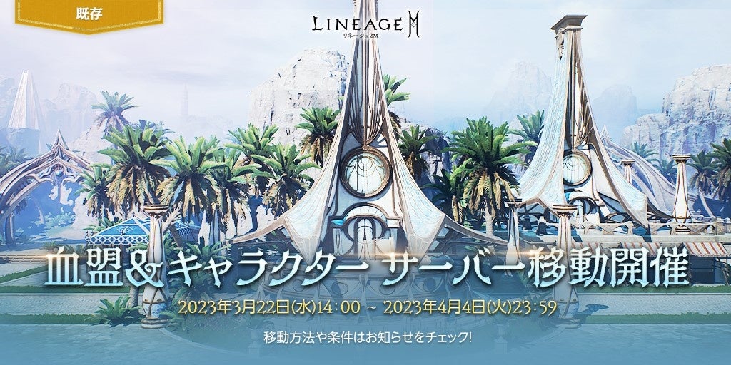 血盟を他のサーバーに移動することができる「血盟サーバー移動」と、パプリオン サーバーを除く全てのサーバー間でキャラクターが移動可能となる「キャラクター サーバー移動」を本日14時より開始しました。