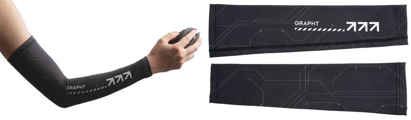 左:着用イメージ 右:アームカバー(上:表面、下:裏面)