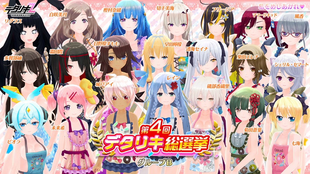 合同会社EXNOA(本社:東京都港区、CEO:村中 悠介、URL:https://games.dmm.com/)が運営するDMM GAMESは、PC(ブラウザ版)/DMM GAMESストア(android向けアプリ)で配信中のフル3Dバトルゲーム『デタリキZ 特別防衛局隊員の日常(以下デタリキ)』において、第4回総選挙が開始されたことをお知らせいたします。