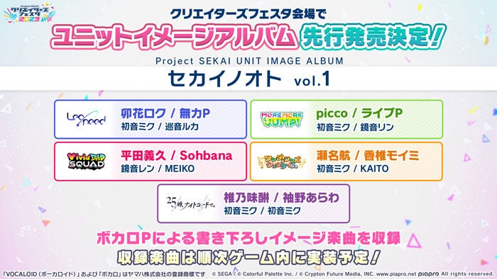 著作権表記:© SEGA / © Colorful Palette Inc. / © Crypton Future Media, INC. www.piapro.net All rights reserved. / ©Avogado6