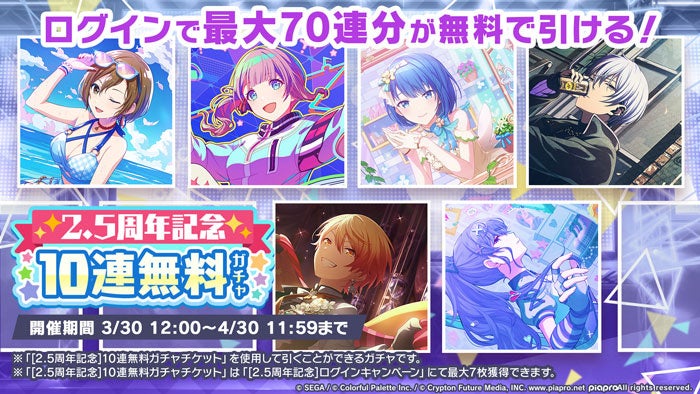 『プロジェクトセカイ』サービス開始2.5周年を記念して「[2.5周年記念]ログインキャンペーン」を開催いたします。