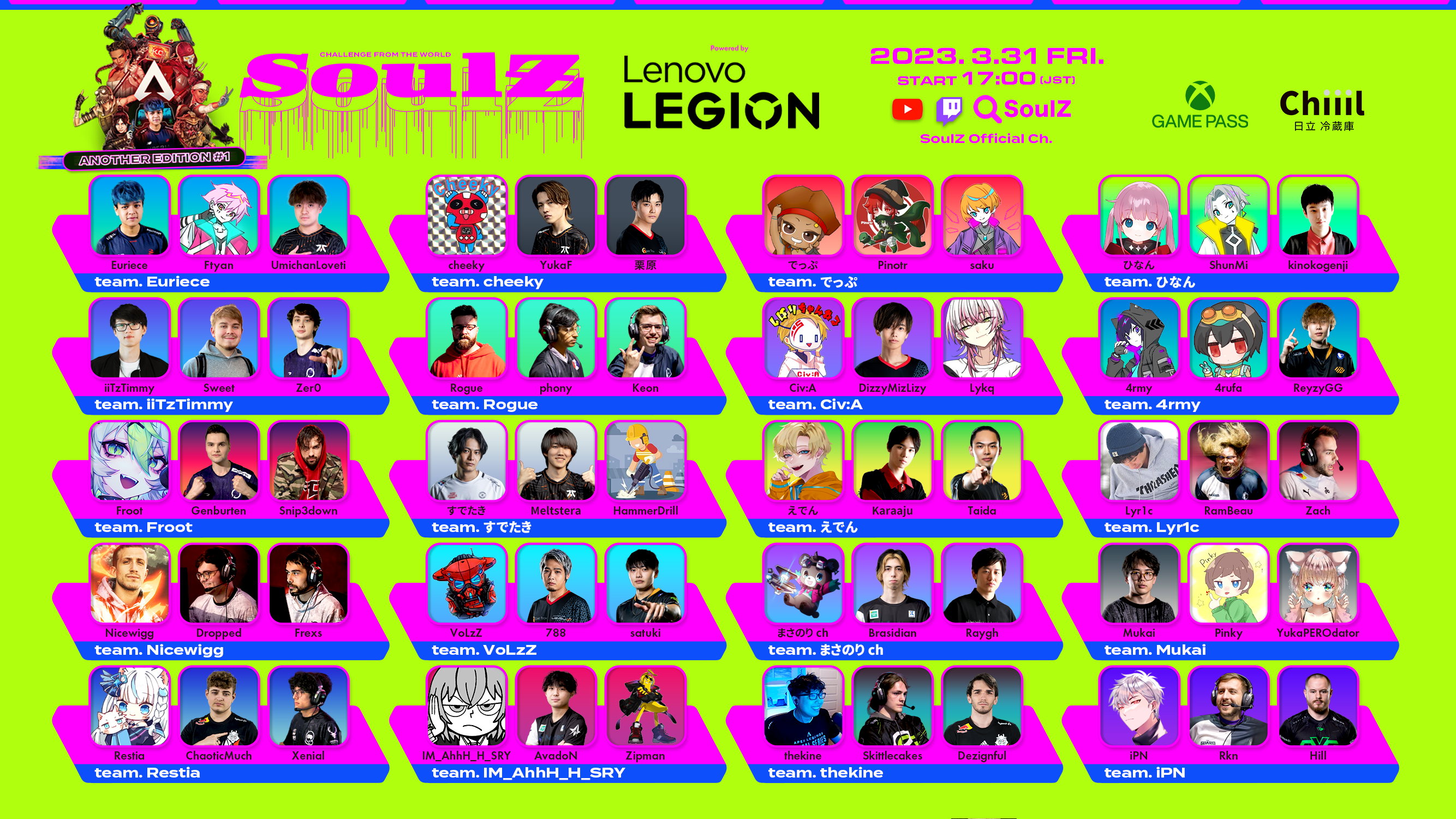 世界のレジェンドから人気ストリーマーまで、出場選手全60名が遂に発表!SoulZでしか観ることのできないExclusiveな混合チームの活躍を見逃すな!