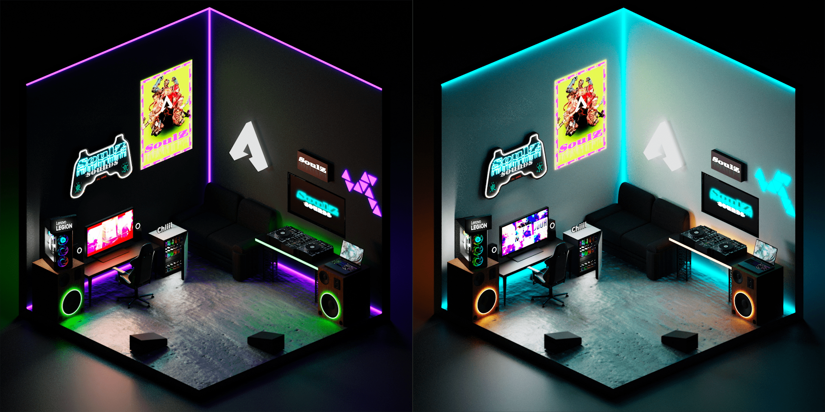 応募は、「Lenovo」のゲーミングノートPC「Legion 570i」と日立冷蔵庫「Chiiil」がレイアウトされたCG版SoulZオリジナル・ゲーミングルームの好きなカラー(Black or White)を選んでRTする施策となっている。