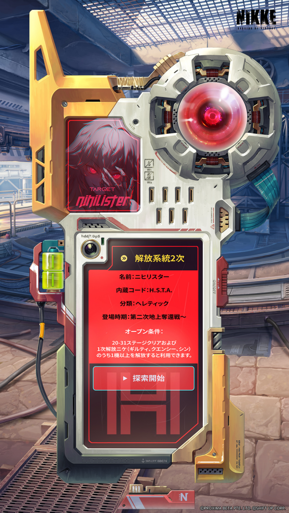ニヒリスターは、「解放」システムの第2期解放ニケです。詳しい獲得方法は、下記新コンテンツの『第2期「解放」』に関する内容をご確認ください。