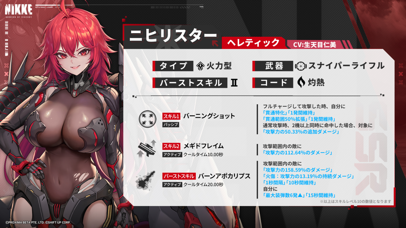 ニヒリスターは、各種範囲攻撃を持ったバーストII火力型のニケです。