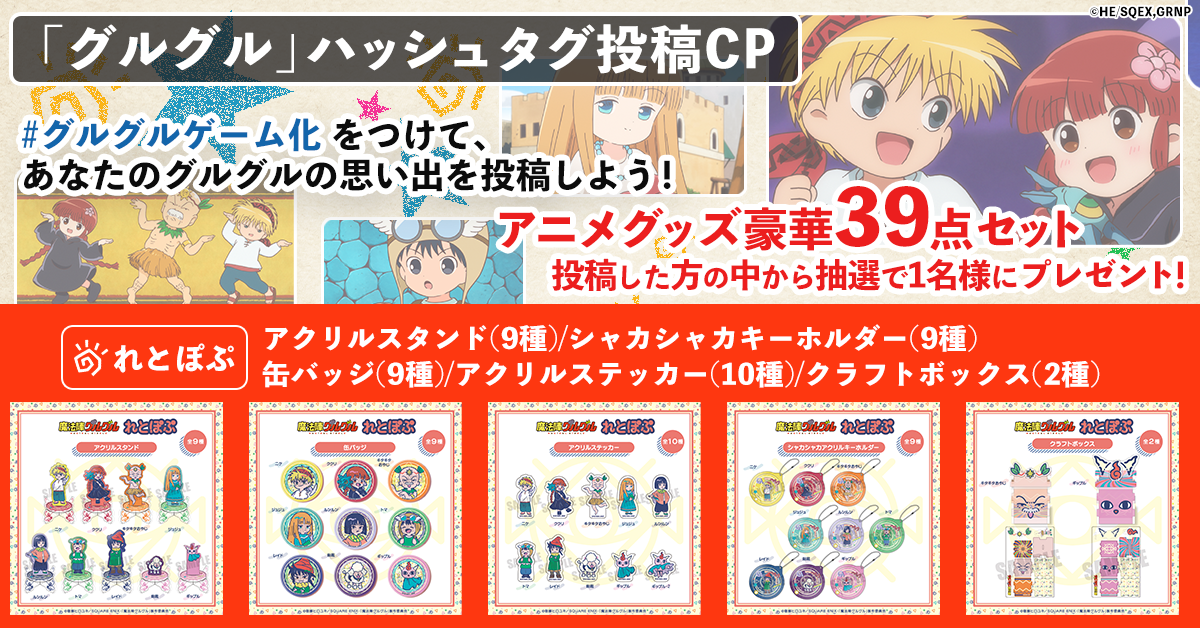 Twitterで「#グルグルゲーム化」をつけて、あなたのグルグルの思い出を投稿しよう!期間中に投稿を実施した方の中から抽選でアニメグッズ豪華39点セットを1名様にプレゼントします。