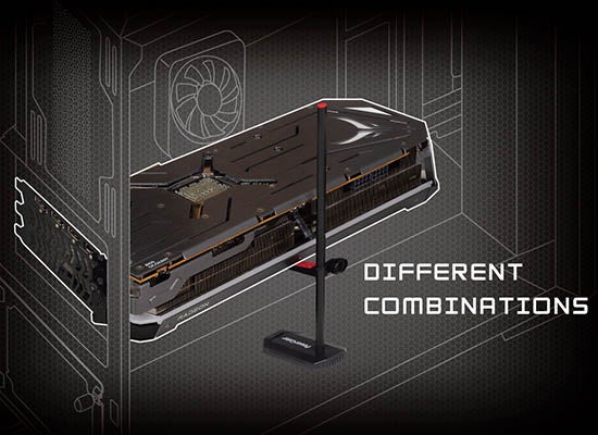 本体長や、サポート部の高さ調整が可能な「GCH-1000」は、様々な形状のグラフィックボードやPCケースに設置いただけます。