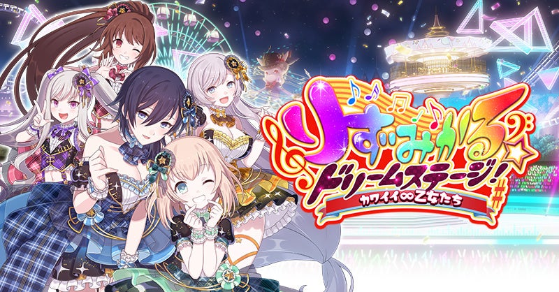 【無限愛】シリーズの5乙女は、『りずみかる★ドリームステージ!カワイイ∞乙女たち』のステージクリア時にドロップする「サイリウム」の獲得数が増えるボーナス付きです。