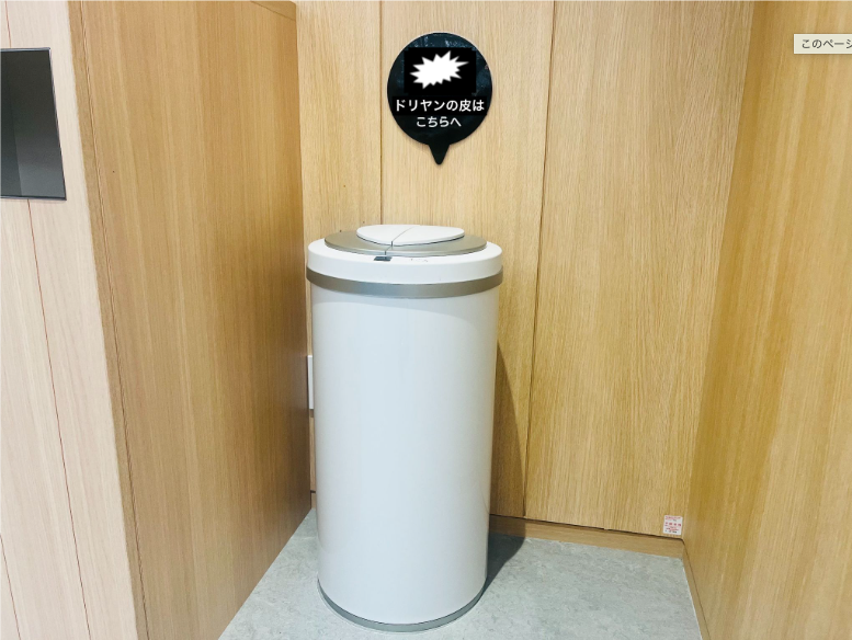 また、この変更にあたり、オフィス内に設置していたバナナの皮専用のゴミ箱は、ドリアンの皮や種専用にいたします。