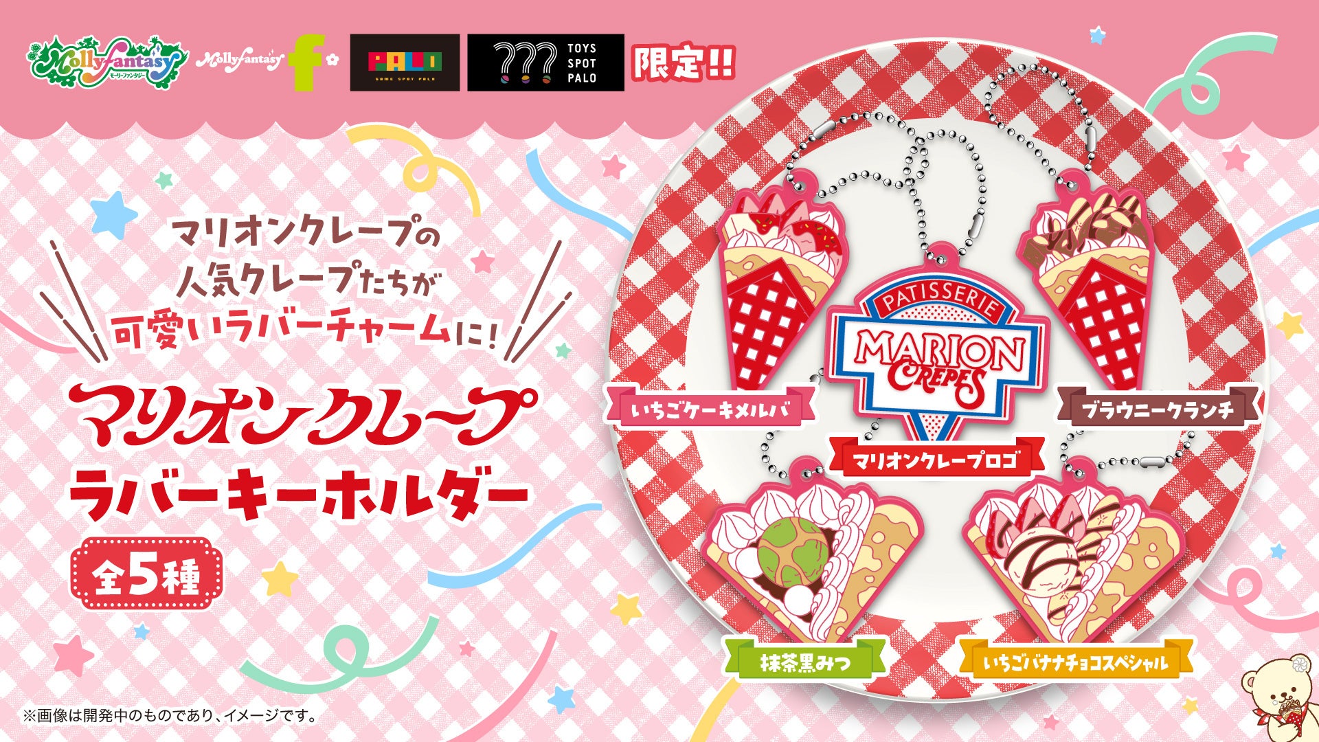 株式会社イオンファンタジー(本社:千葉県千葉市、代表取締役社長:藤原徳也、以下、当社)は、原宿を中心に展開しているクレープ専門店「マリオンクレープ」の「ラバーキーホルダー」を、アミューズメント施設「モーリーファンタジー」「PALO」、カプセルトイ専門店「TOYS SPOT PALO」などに設置する当社オリジナル完全キャッシュレスカプセルトイマシン「かぷえぼ」限定のカプセルトイとして4月7日(金)より順次展開いたします。