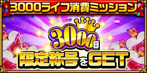 期間中、ライフを消費してミッションをクリアすると、「3000日記念メダル」や限定の称号が手に入ります。