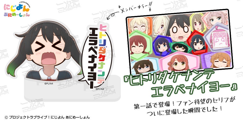 『にじよん あにめーしょん』より、大人気のあのセリフがアクリルスタンドになって二次元コスパより登場です。