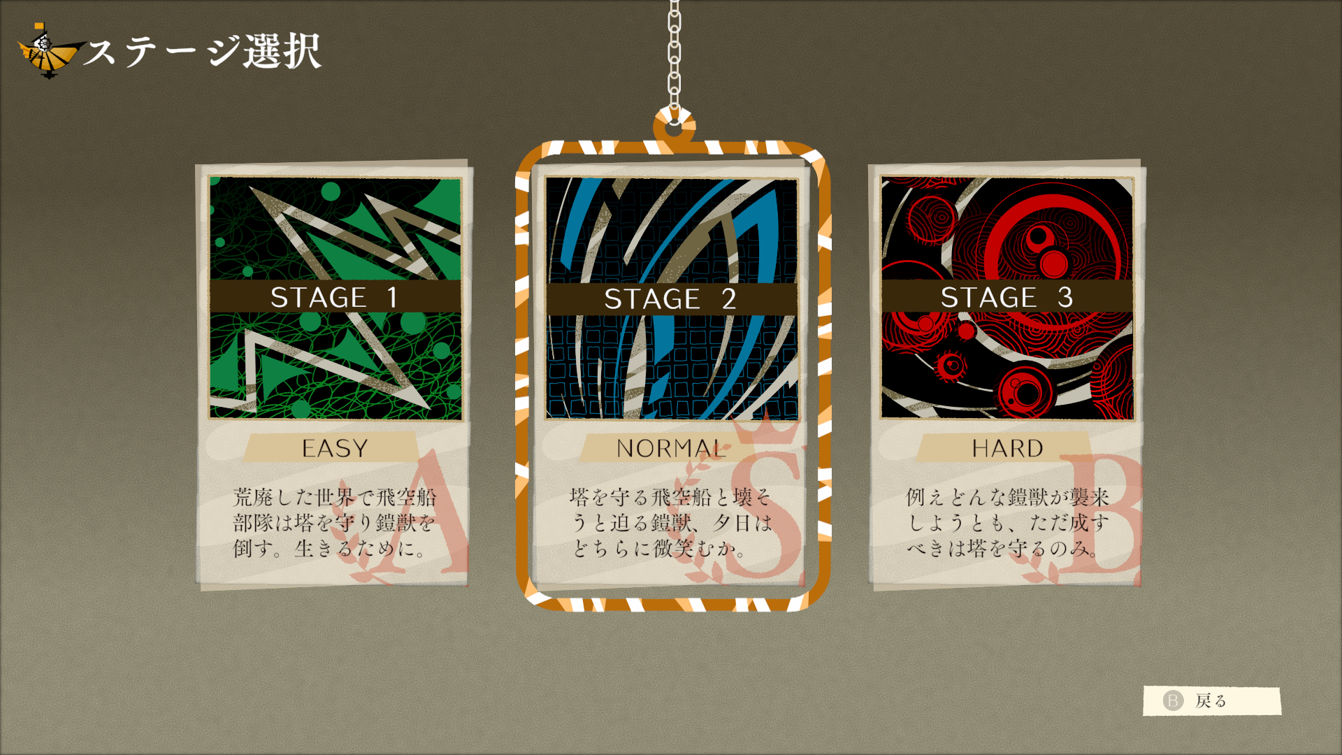 『フックと鎧獣』は、飛空船を操り鎧獣(かいじゅう)の体の形にフックを引っ掛け、バランスを崩して転倒させるゲームです。プレイヤーは飛空船部隊の一員となり、塔を襲う鎧獣の脅威から塔に住む人々を守るため戦います。