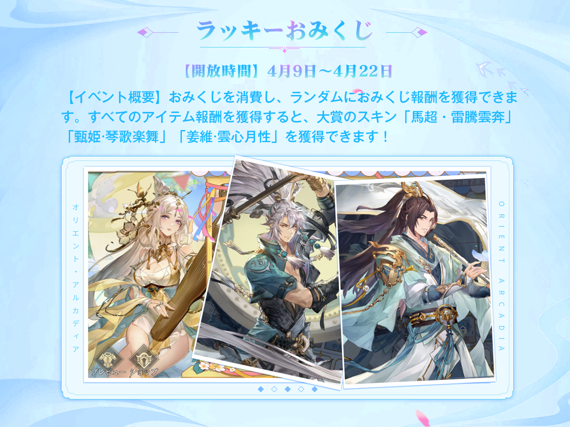 幻想あふれる東洋世界『オリエント・アルカディア』の今後の展開にぜひご期待ください。