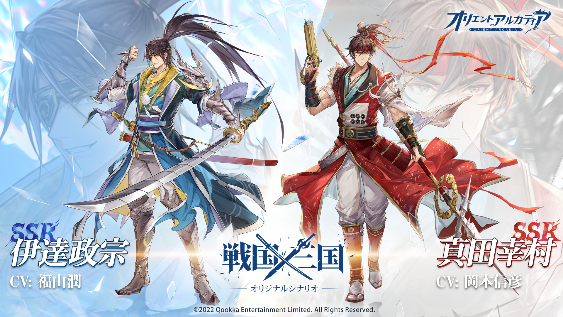 オリアカの世界に新たに「真田幸村(声:岡本信彦)」と「伊達政宗(声:福山潤)」が登場します。キャラクターデザインは、数々の名作を手掛けてきたアートアドバイザーの直良有祐さんが担当。