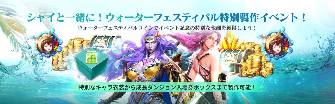 イベント期間中、様々なゲーム内ミッションやイベントのクリアで獲得できる「ウォーターフェスティバルコイン」を集めることで、「タラゴンの咆哮 イオタ」の新衣装や神話強化石、ペットの断片ボックスなどのアイテムを製作することができます。
