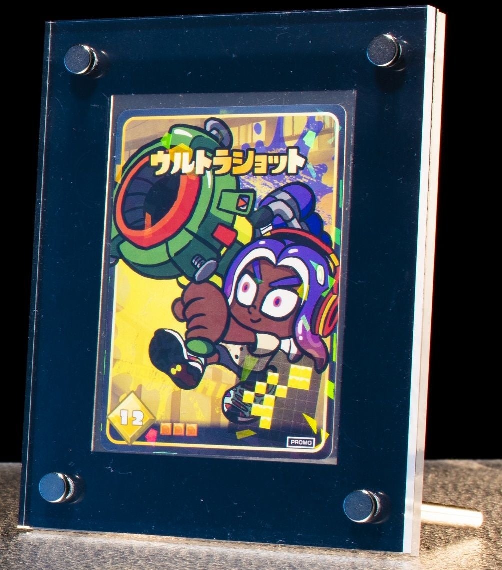 販売本数1000万本越え、全世界中の人々が熱中するゲーム「Splatoon3」。そのゲーム内で遊べるカードゲーム「ナワバトラー」がついにコロコロコミック完全限定でリアルふろく化! パックは光沢感があり、まるで市販で売られているカード商品と同じ出来栄え。さらに、ゲームの世界観を細部にまでこだわり抜き、イカ文字で作成しております。パックに封入されているのは、全部で5枚。どれもキラ加工を施している、超豪華お宝仕様です。 現在、判明しているカードは、『トライストリンガー』、『スプラシューター』、『ウルトラショット』の3枚。残る2枚は、パックを開けてからのお楽しみ。コロコロコミックだけしか入手できない、限定レアアイテムをお見のがしなく!