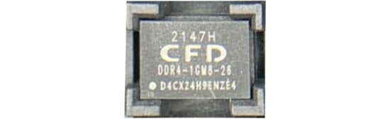 品質保証の表れでもある、CFDロゴがメモリチップにマーキングされています。性能・品質を担保するため、協力工場による数百に渡るチェック・テスト工程をパスしたものにのみ、品質保証としてDRAMチップにCFDのロゴの刻印を施しています。
