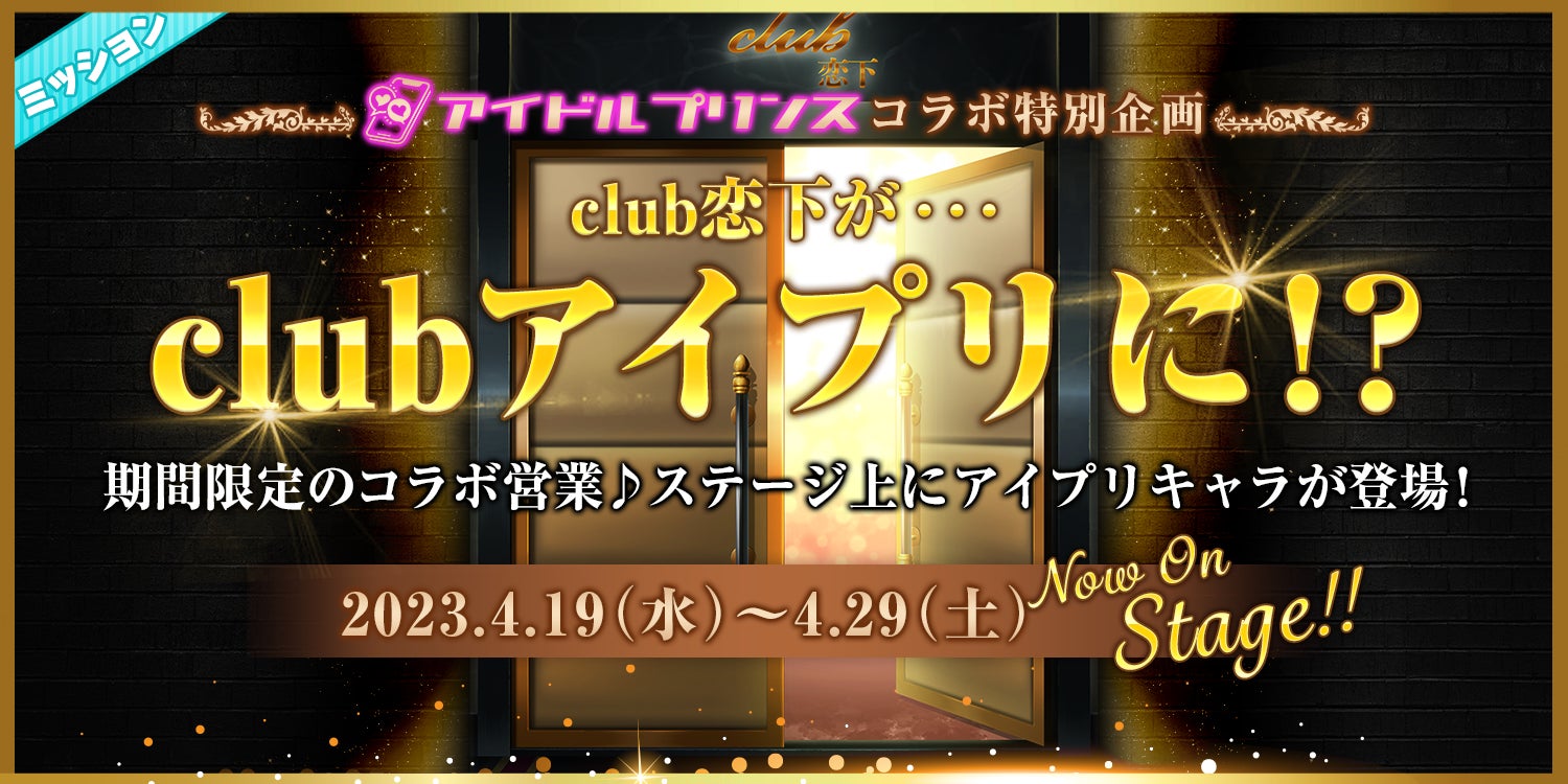 2023年4月19日(水)からclub恋下がアイドルプリンスコラボステージに♪そして、貴女の愛する推しもアイドルになって貴女をお出迎え!是非是非、推しを独り占めしに来てね♡