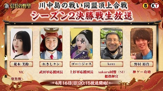 「川中島の戦い 同盟頂上合戦 Season2」の決勝戦は、新要素や豪華賞など盛りだくさん!