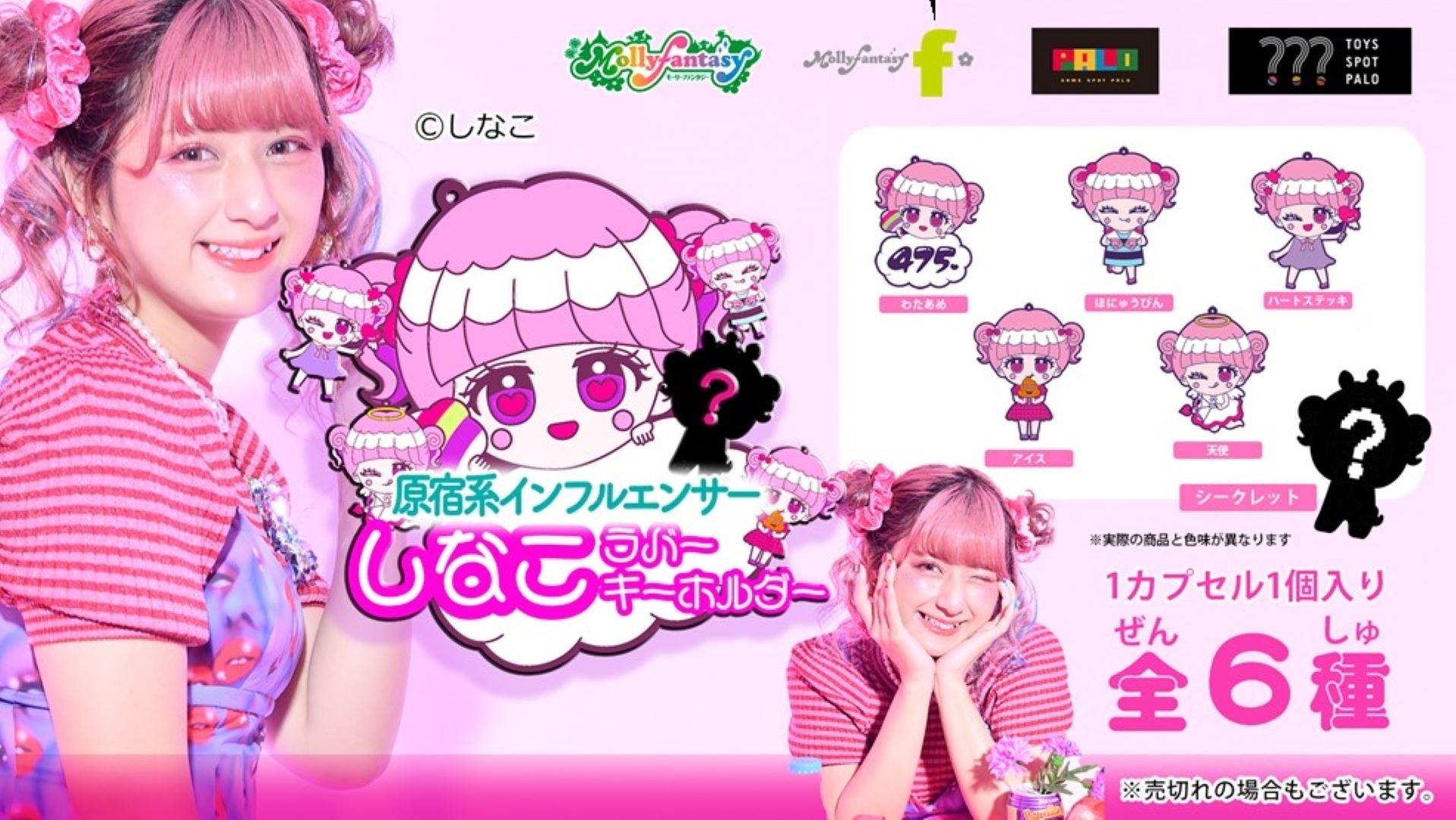 株式会社イオンファンタジー(本社:千葉県千葉市、代表取締役社長:藤原徳也、以下、当社)は、若い世代に人気の原宿系インフルエンサー「しなこ」の「しなこ ラバーキーホルダー」を、アミューズメント施設「モーリーファンタジー」「PALO」、カプセルトイ専門店「TOYS SPOT PALO」などに設置する当社オリジナル完全キャッシュレスカプセルトイマシン「かぷえぼ」のカプセルトイとして4月28日(金)より順次展開いたします。
