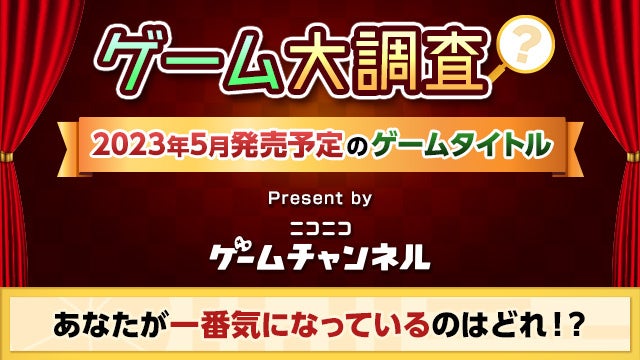 2023年4月16日(日)10:00~4月23日(日)23:55の期間、ニコニコアンケートで2023年5月発売予定のゲームタイトルで皆さんが気になっているものを大調査します!