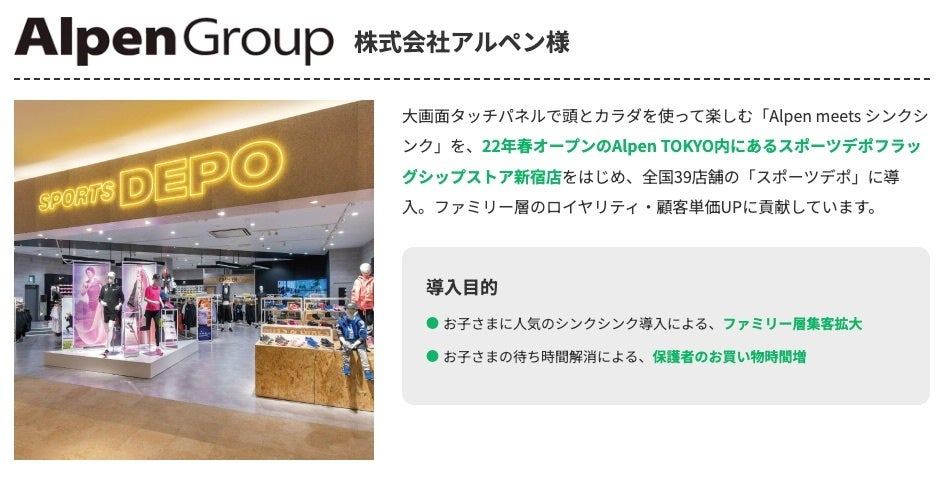 本サービスのベースとなっている知育アプリ「シンクシンク」は、その教育的効果が既に実証されており、保護者の方は安心してお子さまを遊ばせることができます。家族のお買い物時間や待ち時間が「学びの時間」になることで、お客さまの満足度向上にもつながります。