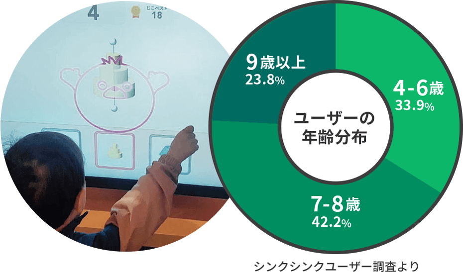 シンクシンクは、ワンダーファイが掲げるミッション「世界中の子どもが本来持っている知的なわくわくを引き出す」に基づき作られた知育アプリです。思考力を育てる上で土台となる5分野(空間認知・平面認知・試行錯誤・論理・数的処理)を、網羅的に楽しみながら学べるアプリとして、2016年より各アプリストアで配信をスタートし、2023年3月で累計ユーザー数250万人を突破いたしました。