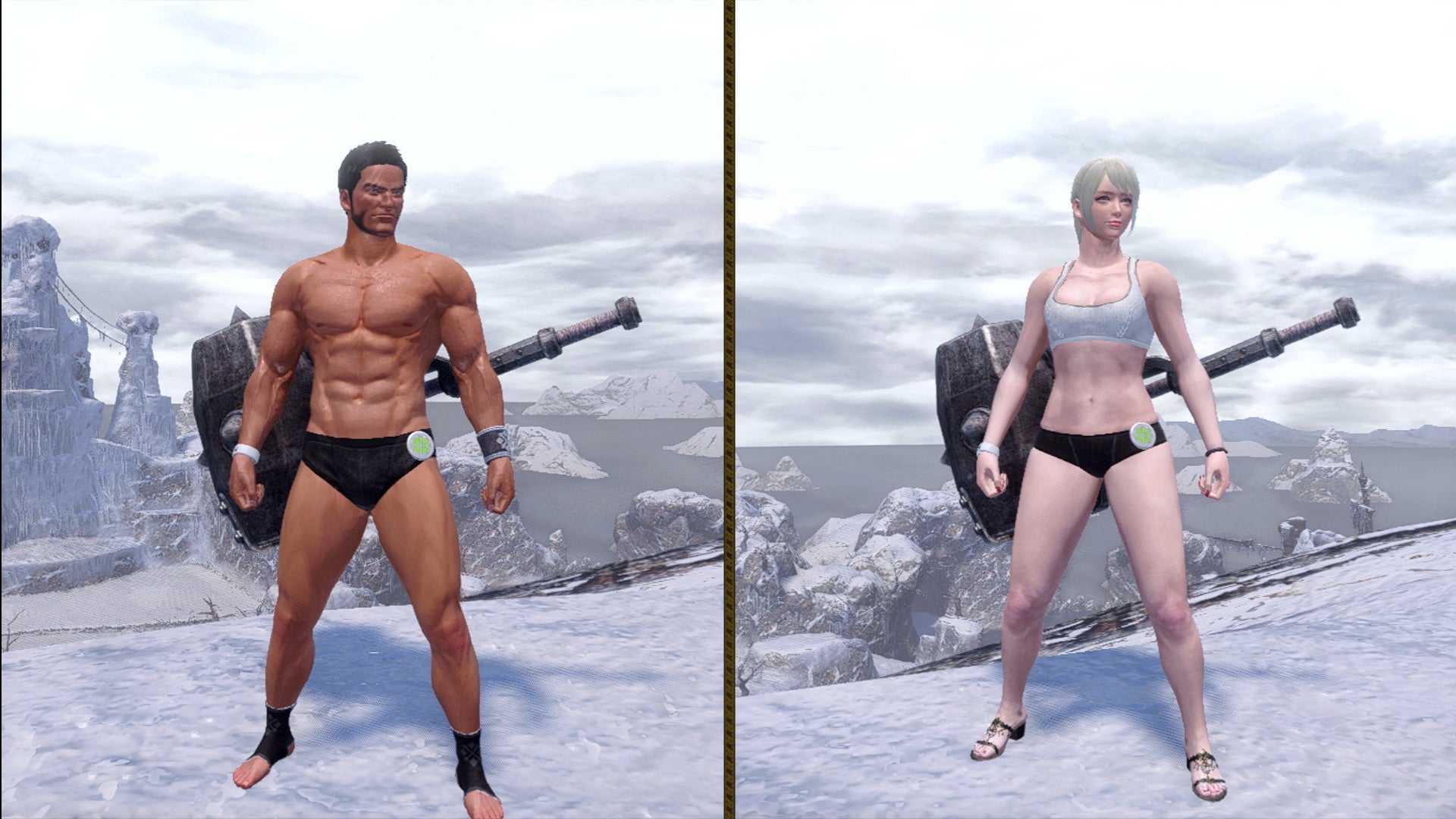 鍛え上げられた理想の肉体が防具&重ね着装備で登場。